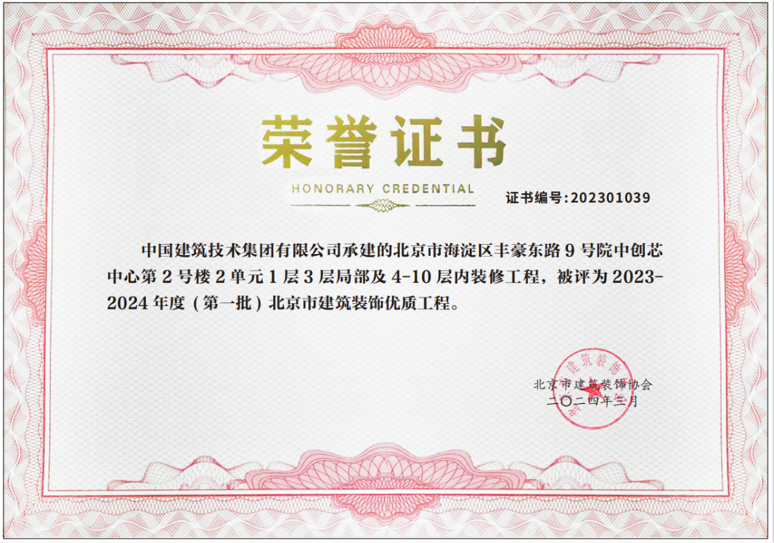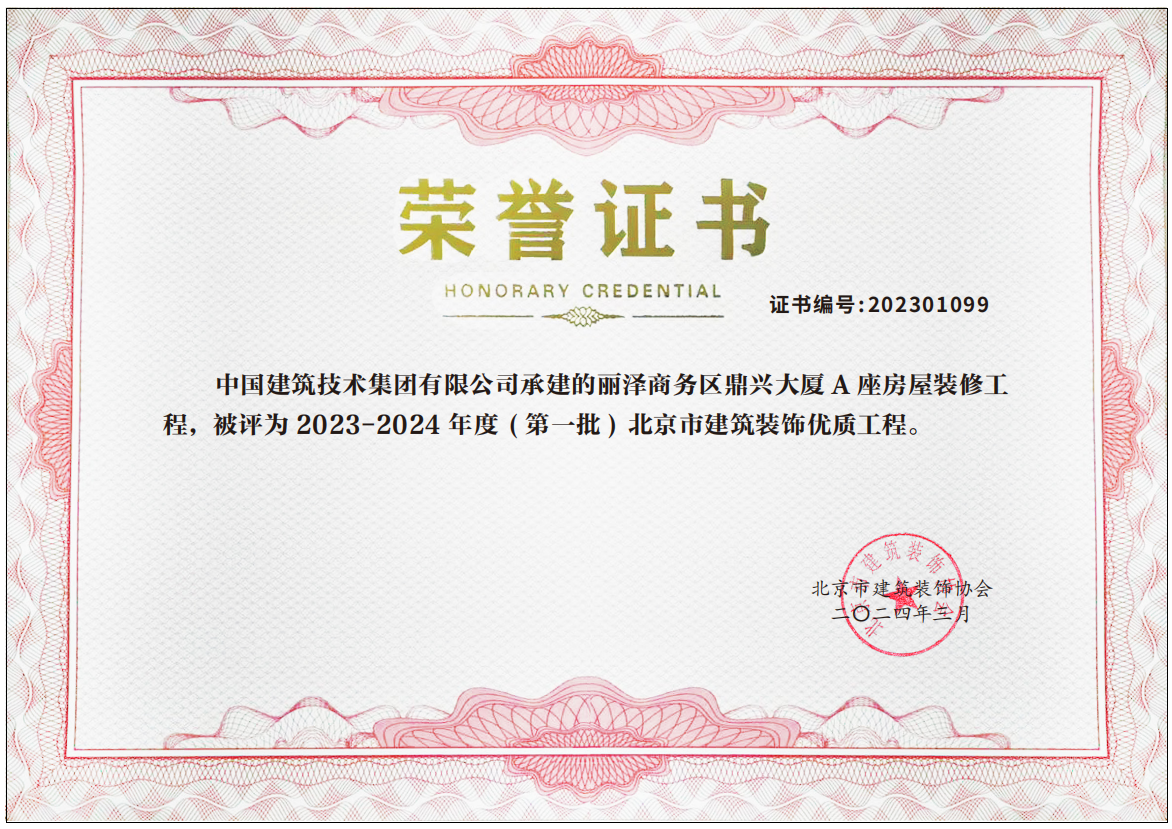 近日,由9428cn太阳集团古天乐承建的丽泽商务区鼎兴大厦A座房屋装修项目、北京大学医学部图书馆工程施工总承包项目和北京市海淀区丰豪东路9号院中创芯中心某公司改造项目荣获2023-2024年度(第一批)北京市建筑装饰优质工程奖。