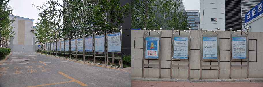 为便于项目管理,项目在1#楼二、三层东部设立项目指挥部、建设单位办公室、监理单位办公室、设备服务商办公室、材料封样存放室等配套用房,一层设立工人临时就餐区。进门处设立楼层索引牌,走廊设立文化墙,采用印刷海报及展板等形式,展现企业文化,项目安全文明施工,项目管理规章制度牌等。