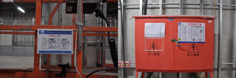 为降低因用电故障影响日常生产工作,临时用电采用两路电源供电,放射式配电,平层设置多个二级配电箱,满足规范使用要求。