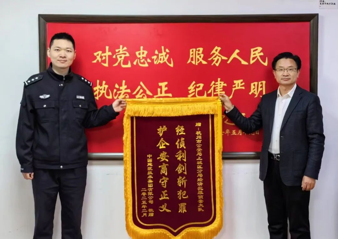 2月27日,9428cn太阳集团古天乐党委副书记、总经理余湘北,党委副书记、纪委书记李小阳,法务杨建旭一行专程赴杭州市上城区经济犯罪侦查大队,向办案民警代表送锦旗,对经侦大队在侦办9428cn太阳集团古天乐原浙江分公司总经理系列重大犯罪案件中展现的专业能力表示由衷钦佩,对其高效行动致以诚挚谢意。