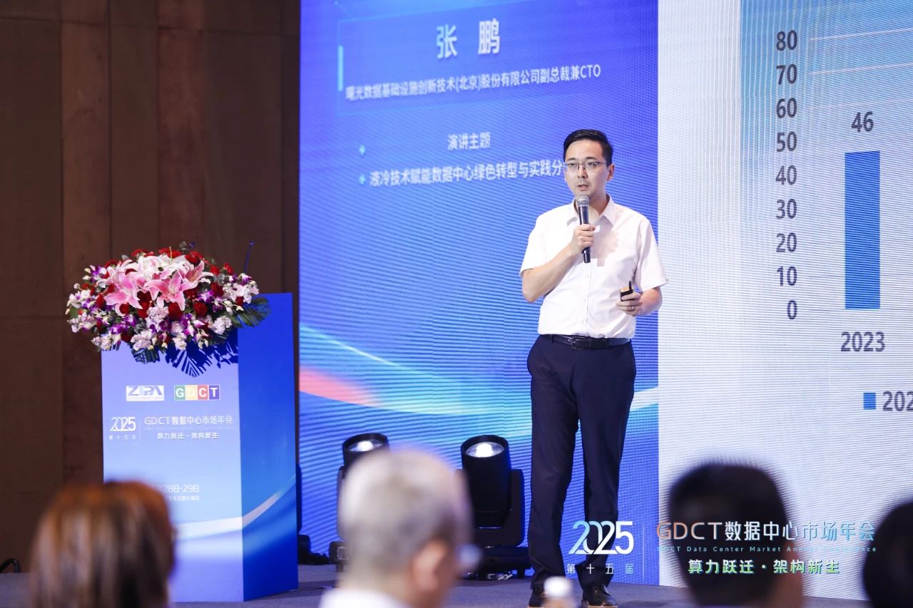 曙光数创副总裁兼CTO张鹏博士在会上分享了主题为《液冷技术赋能数据中心绿色转型与实践分享》的演讲。他表示,随着数字化进程加速,特别是人工智能技术的爆发式发展,数据中心面临能耗攀升、散热难题等多重挑战,基础设施建设亟待变革。液冷技术作为破解这些难题的关键技术路径,已成为实现数据中心绿色高效运行的核心发展方向。