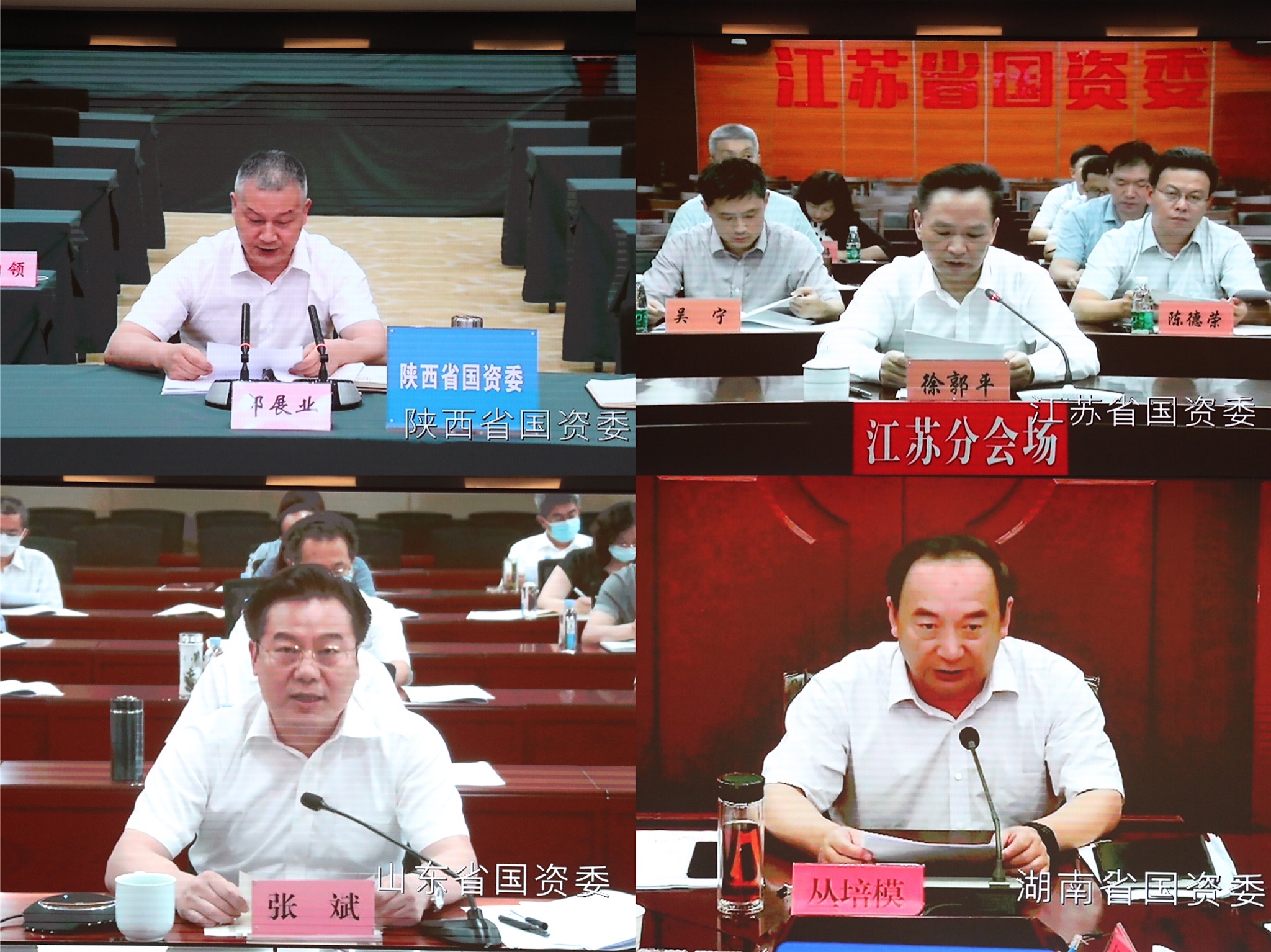 会上,陕西、江苏、山东、湖南等4省国资委主要负责同志通过视频会议系统作了交流发言。国务院国资委总会计师、副秘书长,驻委纪检监察组,各厅局、直属事业单位负责同志在主会场,各省、自治区、直辖市及计划单列市和新疆生产建设兵团国资委负责同志在当地分会场参加会议。
