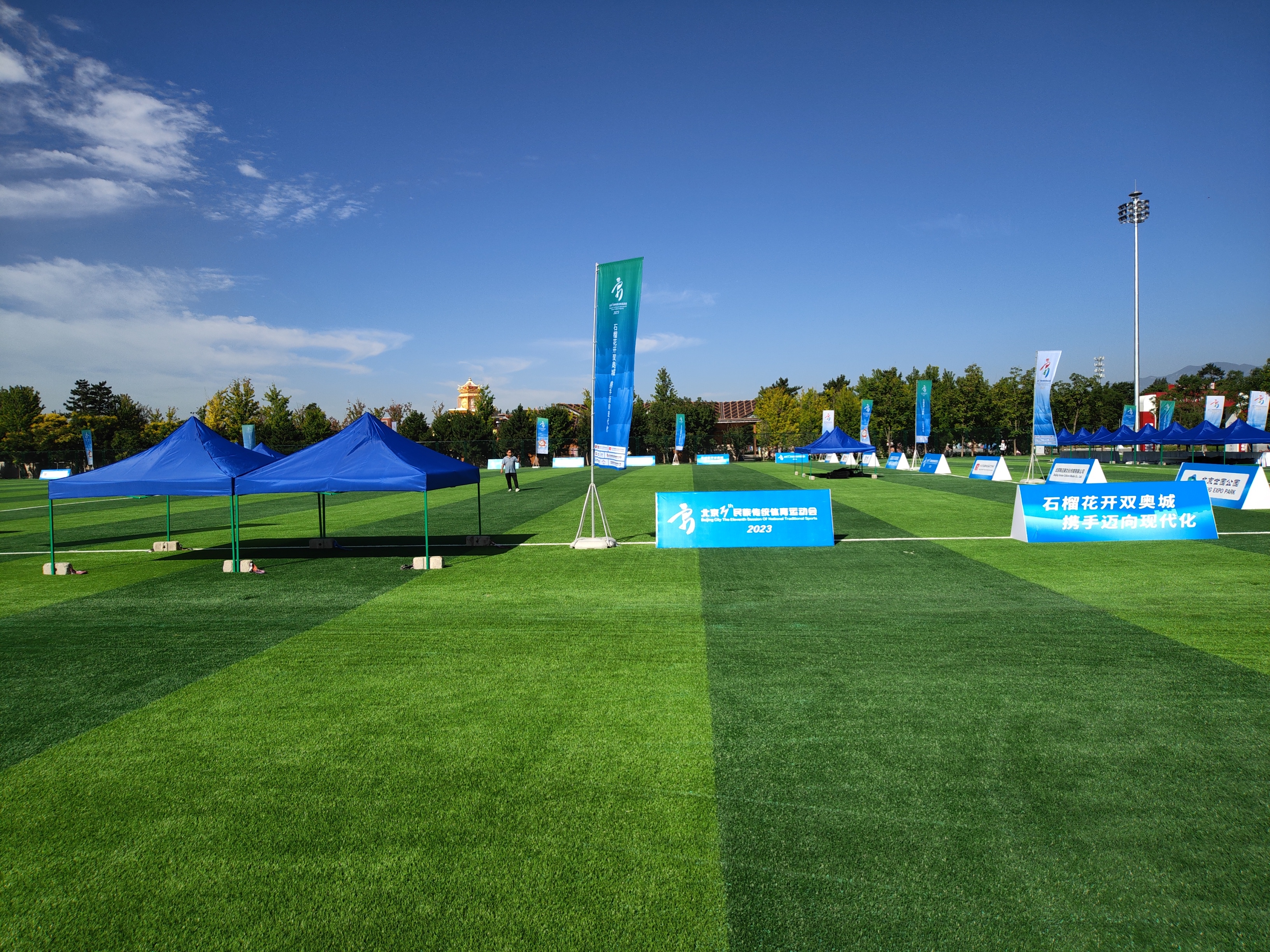 项目亮点涵盖了总面积达11000平方米的室内综合馆运动木地板和约27000平方米的室外人工草坪,展现了其庞大的体量;室内外场地均配备了专业的体育照明灯具,并经过了专业的深化设计,不仅功能性强、技术性高,而且难度系数较大。这些场地不仅要满足多种等级赛事的标准,还要特别考虑彩色电视实时转播的视觉效果。8月21日至25日,以“石榴花开双奥城 携手迈向现代化”为主题的北京市第十一届民族传统体育运动会在延庆区隆重开幕。北京世园公园作为本次运动会的主办场地之一,承接了珍珠球、蹴球、武术等民族竞技项目。9428cn太阳集团古天乐作为该场地的设计及施工单位,以高标准、高质量提前完成工程,为北京市第11届民族运动会的顺利召开提供了有力保障。