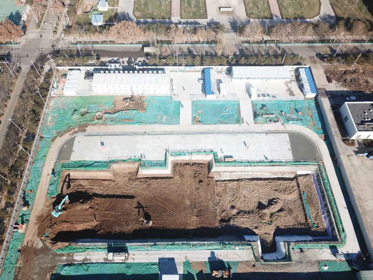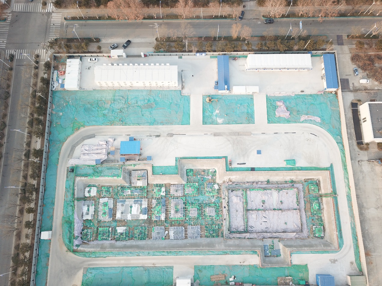 在土方开挖阶段,我们积极贯彻“双碳”政策,使用新能源机械进行施工以降低碳排放;在临建道路施工阶段,我们通过建筑废弃物的处理和再利用,将开挖出的骨料用于路基回填,实现了临建道路的永续与临时结合,有效节约了材料和土地资源。