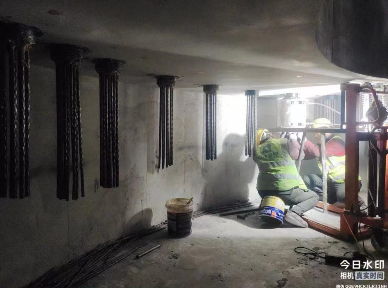 本风电项目建设规模50MW,包含4台GW-191-5000机型和5台GW-191-6000机型,采用钢混塔架结构,总高度160米,其中混凝土塔段高度约为112.6米,预应力体系采用直径15.2,极限强度标准值1860MPa的低松弛高强度无粘结钢绞线,搭配使用TENSAM15系列1860MPa级锚具,环向36孔布局,单孔10/11根,目前项目已发电并网,运行稳定。