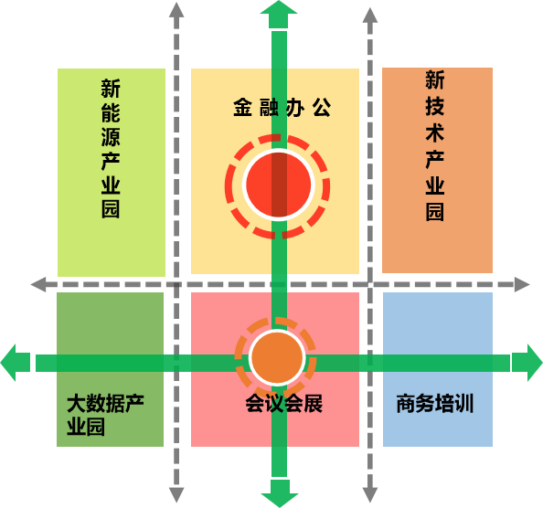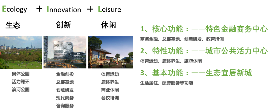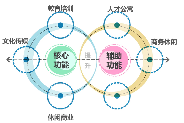 金融商务产业协同发展——重点发展现代生产性和生活性服务业,如总部办公、商务商业、科创文创、会议会展、精品购物(OUTLESS)、特色餐饮等。