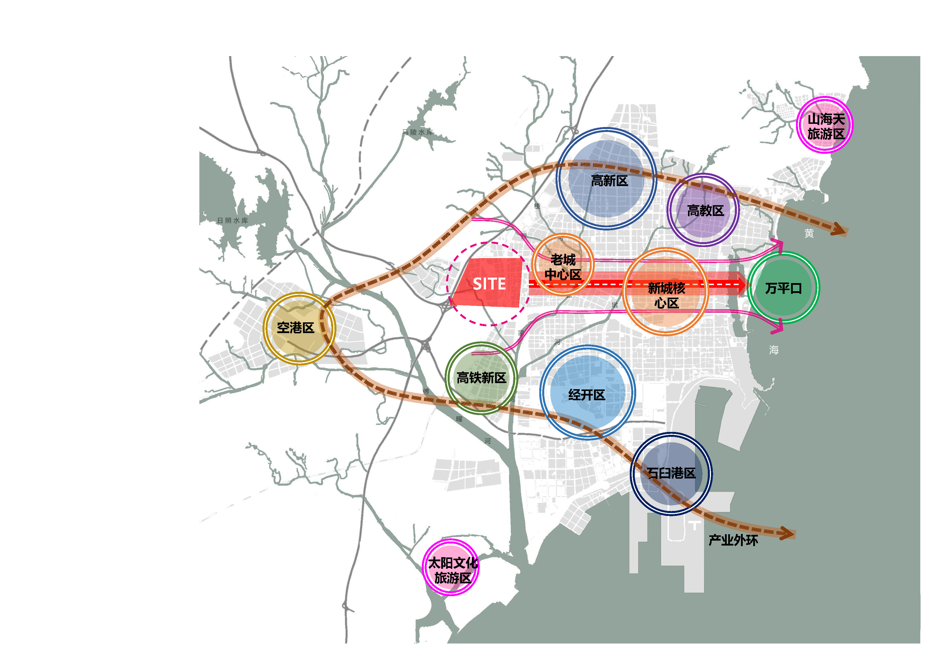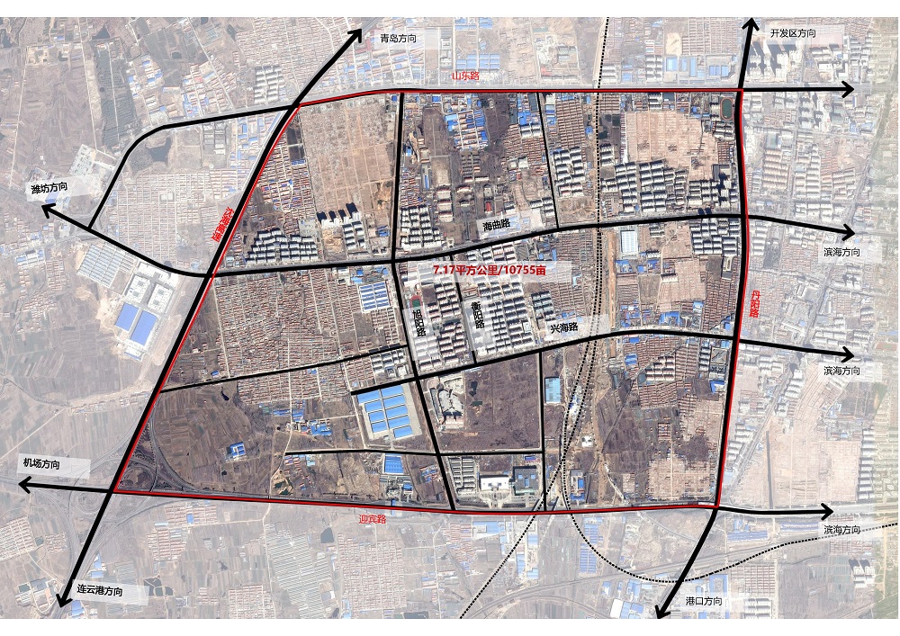 东港城西片区位于日照西部门户,东临老城中心,南临高铁片区、西有空港新城,北有高新区,总面积7.17平方公里。对外通过高速、高铁、机场与周边区域城市紧密联系。对内山东路、海曲路、迎宾路三条东西向城市主干道与城市中心无缝对接,南北向合村路、丹阳路与北部高新区、南部经开区、临港区一体化联通。作为城市西部门户,工业衰败、设施老化、居住品质下降已经成为当地人的普遍印象。在新的发展时期,城西片区将承载产城融合的历史使命,实现城市品质化扩容的战略支点,迎来了实现历史性跨越发展的关键机遇期。