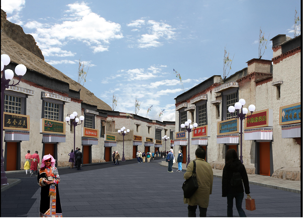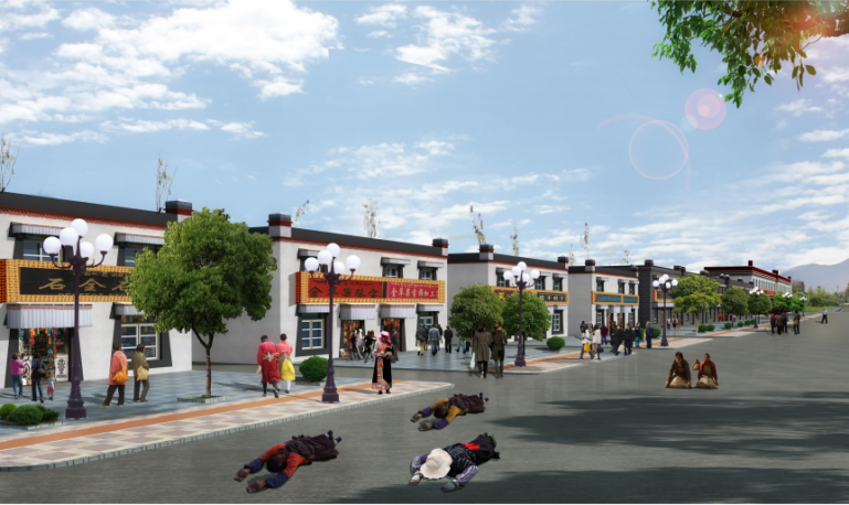 更新:对于规划地块内的沿街建筑,质量较好的,但风貌较为普通的现状建筑,规划予以更新。主要表现为外立面的重新装饰,融入藏式风格,以及新功能的植入。重建:对于规划用地范围内的质量较差的建筑、危房、以及影响风貌但难以处理的建筑,规划予以拆除并重新建设。新建:位于江孜南部的地区处于未开发状态,规划将其作为城市新区建设用地,并融入新藏式风格。
