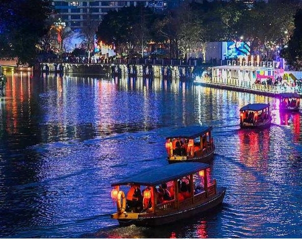 项目的游玩景点包括10KM长沿江两岸景观声光影展示,沅水湾高楼、涉江楼、橘颂塔、白沙大桥及铁山河大桥灯光秀、沿江步道、崖壁5D灯光秀、G319国道高速出入口至辛女广场6KM长路灯亮化工程等。