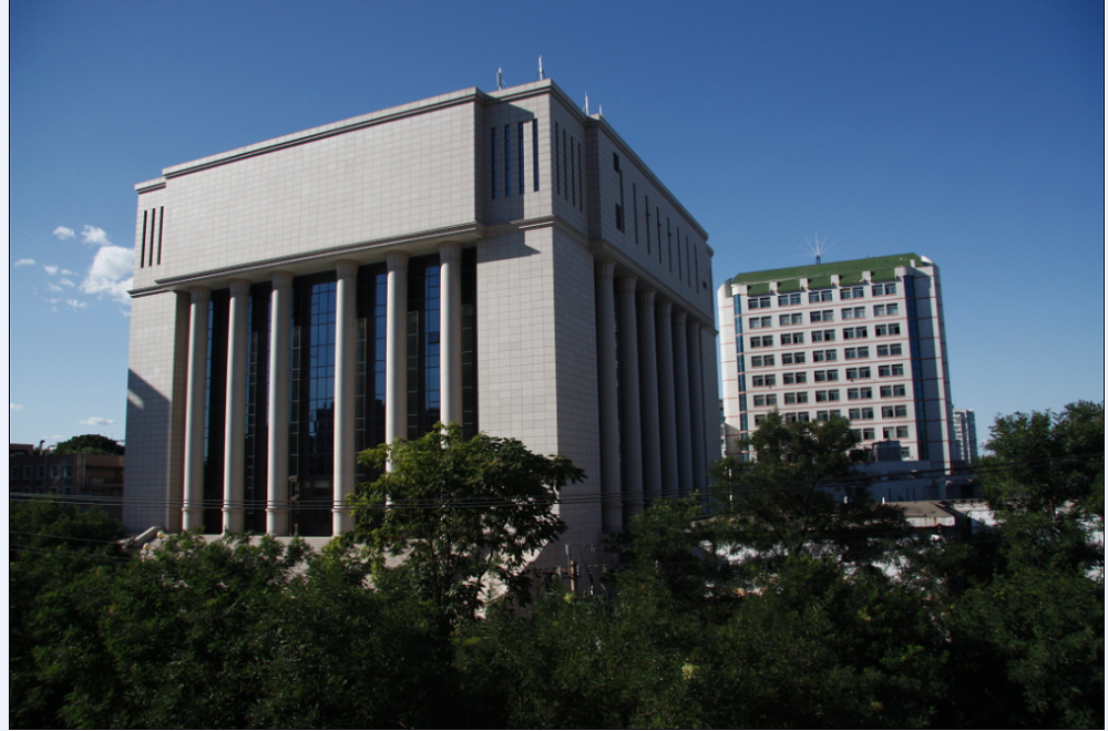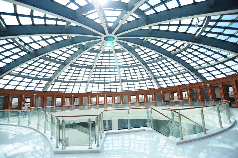 主体建筑长55.8米,宽61.2米,高54米,体量集中紧凑。外立面造型简约、典雅,以中轴线东西对称布局的形式表现了建筑的端庄、神圣。外装饰石材实体墙、柱廊、玻璃幕的虚实对比光影的变化,表现了建筑的艺术美和恢弘气势。四个立面设计的柱廊每面6根共24根柱式,代表了一年四季24节气,春夏秋冬,四季常青,蕴含着自然和生命的和谐,装饰柱被誉为“生命和平柱”。