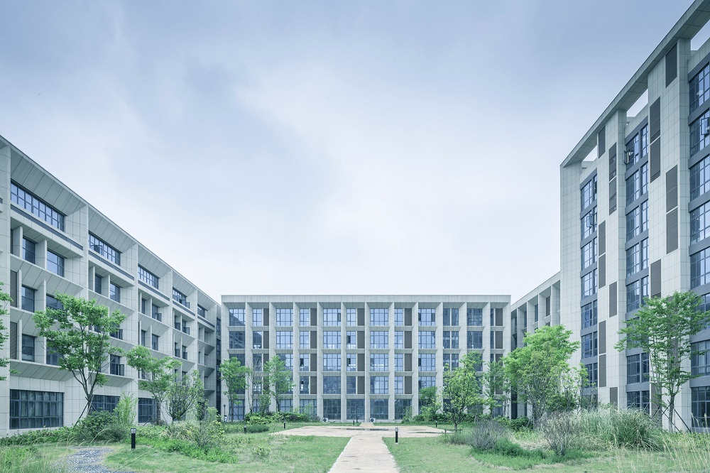 绿色建筑设计理念贯穿整体设计。建筑景观一体化设计:各教学楼设置屋顶绿化,与水体景观相互呼应,形成赏心悦目的景观阶梯,塑造满足现代教学要求的整体式景观建筑群落。被动式设计:建筑采用适应当地气候条件的平面形式及总体布局,利用导风墙、廊架、架空、绿色材料设计,使建筑各组成部分尽可能以自然的方式运行,降低建筑能耗。
