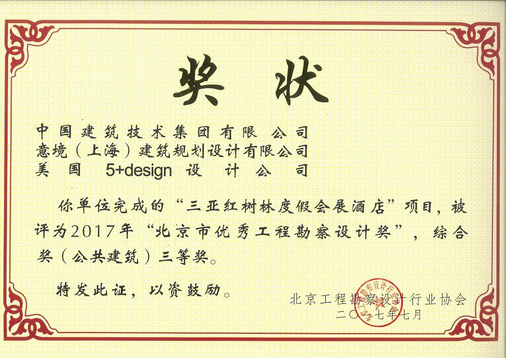 被评为2017年“北京市优秀工程勘察设计奖”,综合奖(公共建筑)三等奖。
